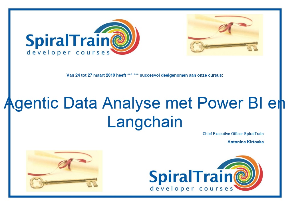 De deelnemers krijgen na het goed doorlopen van de cursus een officieel certificaat Data Analyse met Power BI.