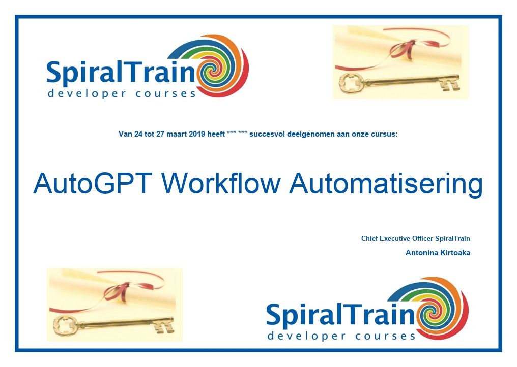 Na succesvolle afronding ontvangen deelnemers een certificaat van deelname aan AutoGPT Workflow Automation.