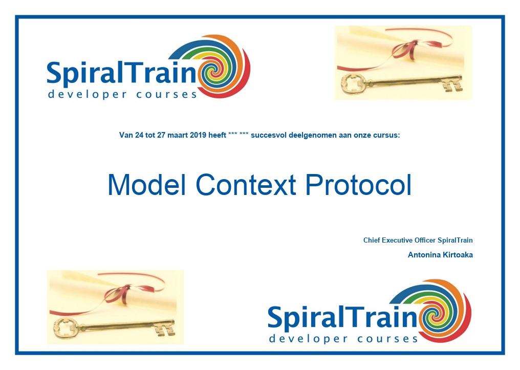 Na afronding ontvangen deelnemers een certificaat van deelname aan Model Context Protocol.