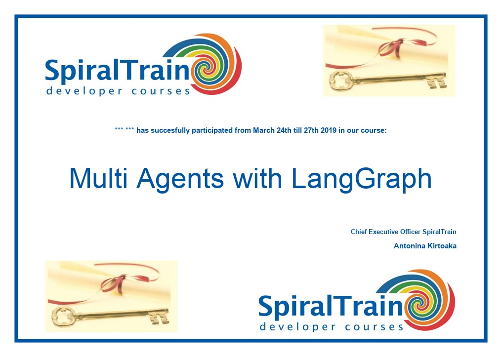 The course Multi Agents with LangGraph from SpiralTrain teaches you how to design and build sophisticated multi-agent AI systems using LangGraph. You will learn how to orchestrate multiple autonomous agents, manage complex workflows, implement state machines, and create production-ready agentic applications that collaborate to solve challenging problems.