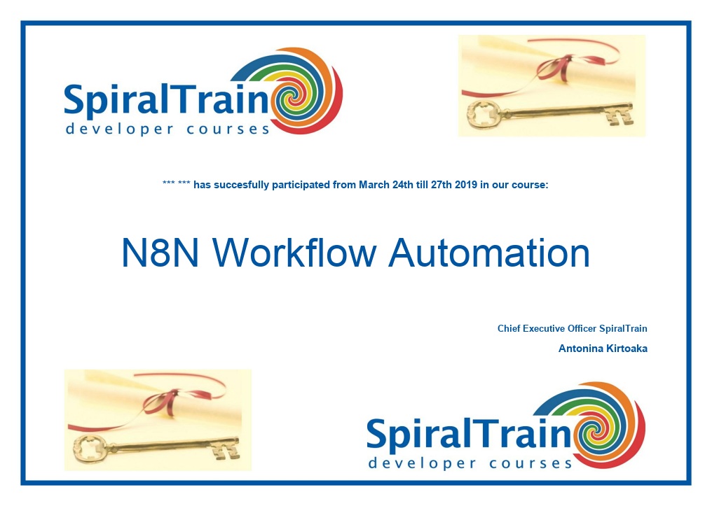 The course N8N Workflow Automation from SpiralTrain teaches you how to design and build powerful automation workflows using the n8n platform. You will learn how to connect applications, automate business processes, integrate APIs, and create intelligent workflows that streamline operations and eliminate repetitive tasks.